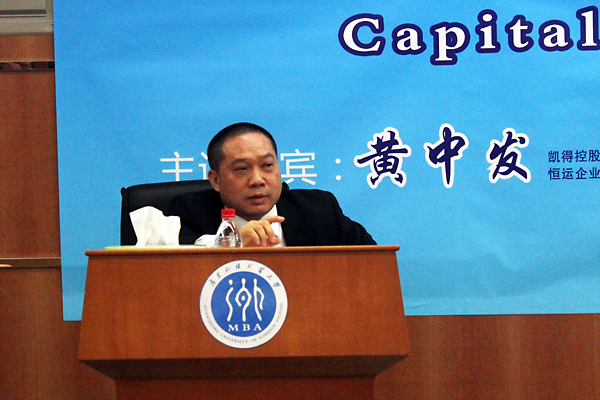 本网讯 12月3日下午,以“资本经营之道”为主题的专题讲座在广东丝纺讲堂(北校区九教103)举行,主讲嘉宾为广州凯得控股有限公司(以下简称“凯得”)党委书记、董事长,广州恒运企业集团股份有限公司党委书记、董事长黄中发先生。