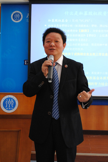 “私募股权投资行业是处于社会金字塔塔尖的行业,其从业人员大都是来自各行各业的精英,并且是具备投资、金融、法律、财务、理财、心理知识的高素质人才。”向阳先生如是说。他以两个实战案例向MBA讲堂的学员们展示了私募股权投资的魅力: