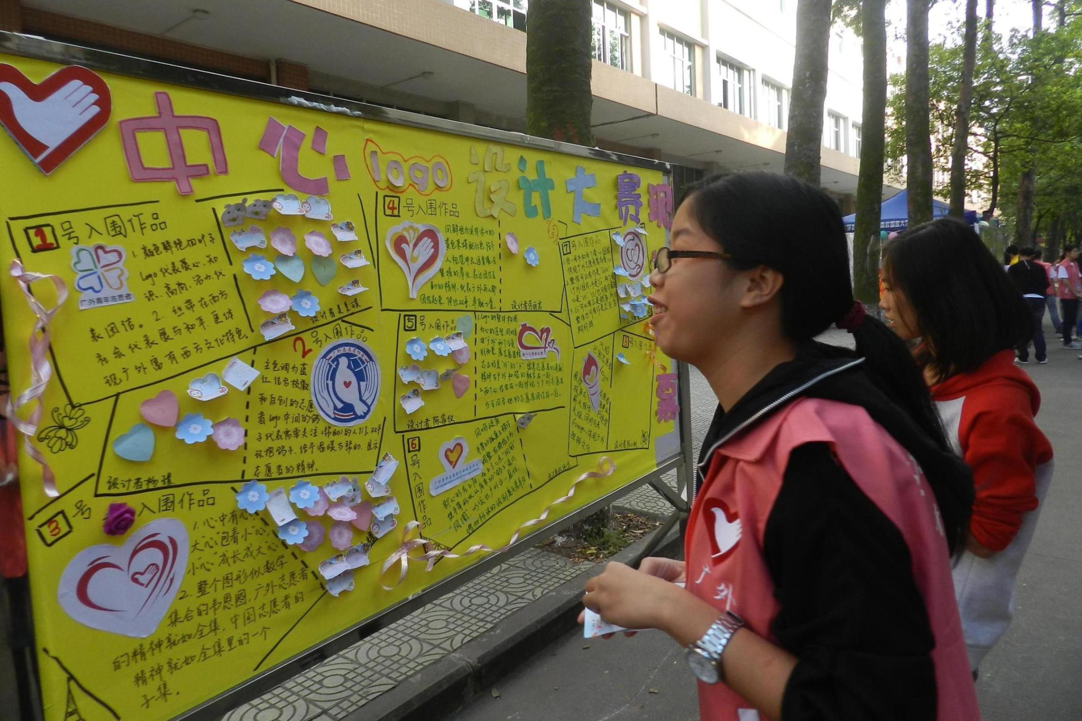 与此同时,青年志愿者行动指导中心成立十周年之logo设计大赛8强作品也在现场举行投票。同学们纷纷驻足,为自己最喜爱的代表着广外志愿特色的logo作品投票。