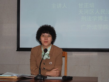本网讯 11月24日下午,广州市天河区人民法院院长、“许霆案”主审法官甘正培应邀到我校为法硕学生作了一场题为“许霆的罪与罚”的讲座。讲座在北校区六教广晟讲堂举行,由法学院院长蔡镇顺教授主持。