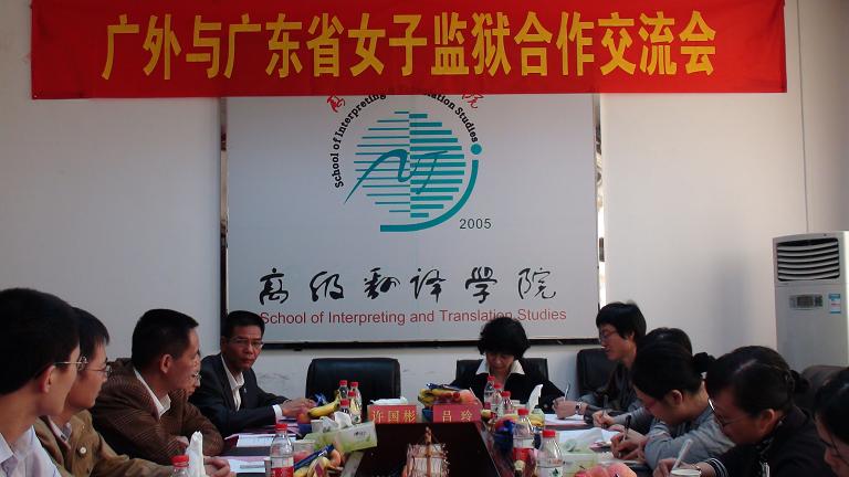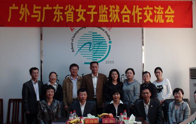 本网讯 11月23日上午,广外与广东省女子监狱合作交流会在四教四楼会议室举行。上月28日,翻译学院全体师生党员前往女子监狱过特殊组织生活,接受警示教育,取得了积极的反响。为了进一步深入交流,探讨女子监狱与我校合作模式,广东省女子监狱一行来到我校,与相关领导商谈交流与合作事宜。 参加本次合作交流会的有广东省女子监狱党委书记、监狱长吕玲,党委副书记、纪委书记薛玫,副监狱长罗晖等。党委副书记许国彬、翻译学院党委书记高云坚以及部分学院党委副书记也参加了交流会。