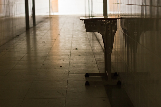 如今寂静得只有课桌独立在幽深的走廊
