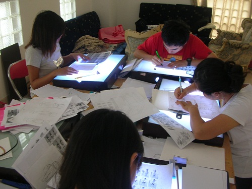 美好作品的背后总有着无比的辛酸,这部倾注了吴超心血的动画从思考剧本到制作完毕共用了两年。“别人是十年磨一剑,吴超是两年磨一片。”艺术学院院长李于昆笑着说道。前期思考剧本的半年里,吴超总随身带着草稿本,有时会在图书馆呆上一整天,在草稿本上写写画画,吴超打趣地称草稿本为记录了灵感、感悟的“杂货本”。后期制作则精益求精:时长22分钟的动画,每一帧都是手绘画稿,手工上色,然后输入电脑处理。吴超和四位06级的学生共同完成了后期制作,“为了在视觉上呈现完美的艺术感,我们可谓是费尽心力,不惜成本。”吴超说道。