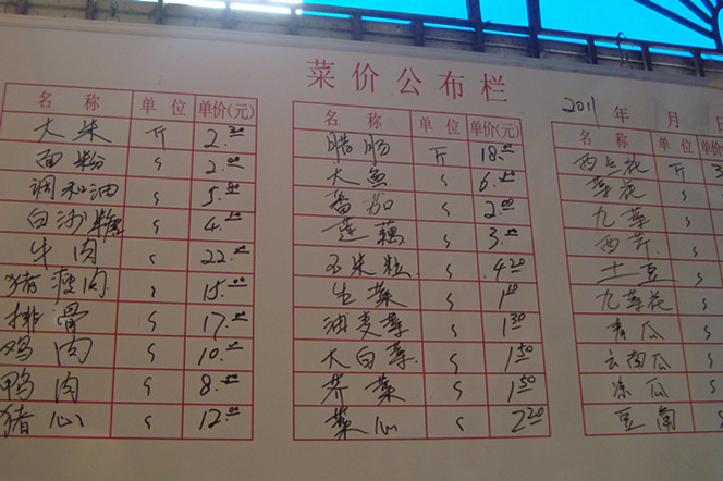 饭堂菜价表,你留意过吗?