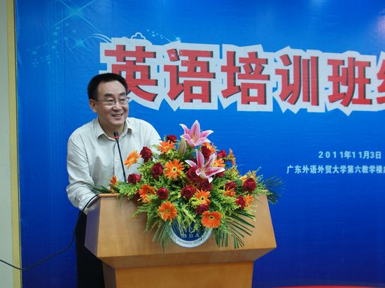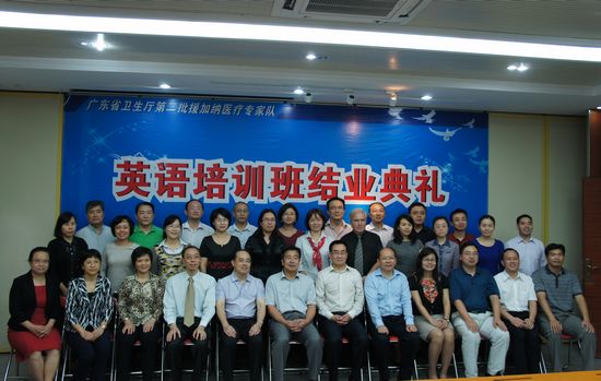 本网讯 11月3日下午,广东省卫生厅第二批援加纳医疗专家队英语培训班结业典礼在我校北校区第六教学楼广晟讲堂隆重举行。出席结业典礼的有广东省卫生厅副厅长廖新波、援外中心主任张铁强、交流合作处处长冯绍民,我校副校长顾也力、商英学院党委书记车小真以及主持工作的副院长郭桂杭等。结业典礼由商英学院副院长吴易明主持。