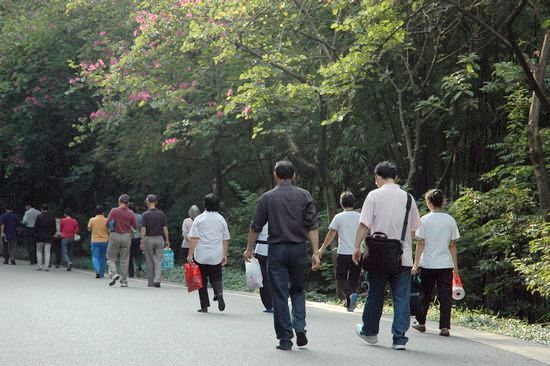 南校的老师徒步行走内环抵达中心湖广场