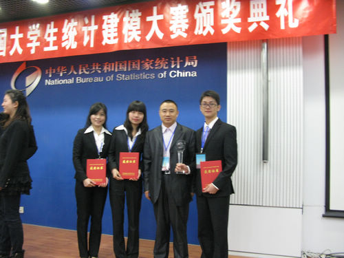 本网讯 由中国统计教育学会、中国现场统计研究会、中国数学会概率统计学会联合举办的2011年全国大学生统计建模大赛结果近日揭晓。我校思科信息学院统计系参赛学子取得了骄人成绩,共有4支队伍获奖。其中,08级学生陈文聪、庄文钿、苏玲凭借作品《二重趋势时间序列的组合预测模型》夺得全国二等奖,另外3支队伍获得优秀奖。