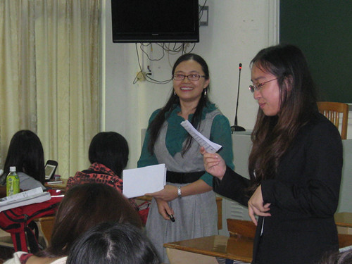 朱秀全老师的公开课充分体现了“以学生为中心”的教学理念,主要由教师引导、调动学生积极投入各种学习活动,从快速浏览(Skimming)到整篇阅读(Global reading)再到详读(Detailed reading),朱老师设计了不同的活动和练习,使学生通过主动学习对一篇课文逐步加深理解,既学到了语言知识,提高了英语运用技能,又加深了对文章的整体理解和内涵提升,还贯穿了中西文化的比较与透视,整堂课精彩纷呈,高潮迭起,给人留下深刻印象,受到来访同行的高度称赞。