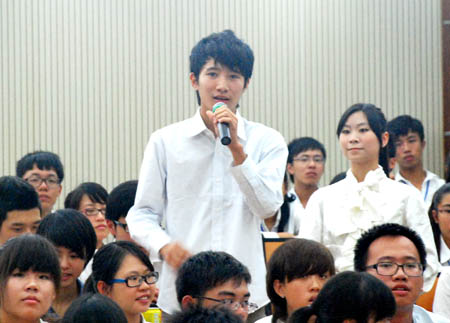 学生干部向顾也力提问