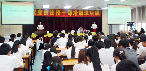 本网讯 10月20日,广外南国商学院2011-2012学年度团员干部培训第三讲在学术报告厅举行。全国政协委员、广外副校长、学术委员会主席顾也力以“爱国、复兴、创新”为主题,为学院学生干部详细讲解了“大学生在国家发展中应尽什么义务,扮演什么角色”等热点问题。讲座由南国商学院党委书记黎冬主持。