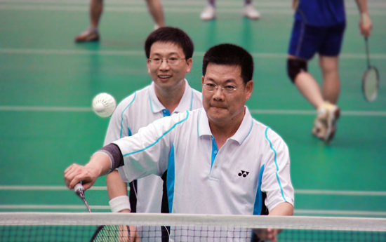 众多学校领导也前来“观战”并参与其中,仲伟合校长与陈平仲老师搭档参加男子双打比赛。在第一,二轮的比赛中,他们用分别轻松战胜了东语学院和教育学院的教工代表顺利杀入八强。在赛场上,仲伟合与陈平仲在赛场上配合完美,敏捷矫健的步调上前推球,后场拉高远球,前场吊网前球、勾对角,一攻一防,竞赛激烈,体现了较高的竞技水平,出众的球技赢得全场阵阵欢呼声。但在第二个比赛日的四强争夺战中,由于在关键球上出现了一些失误,他们遗憾地止步在四强门外。