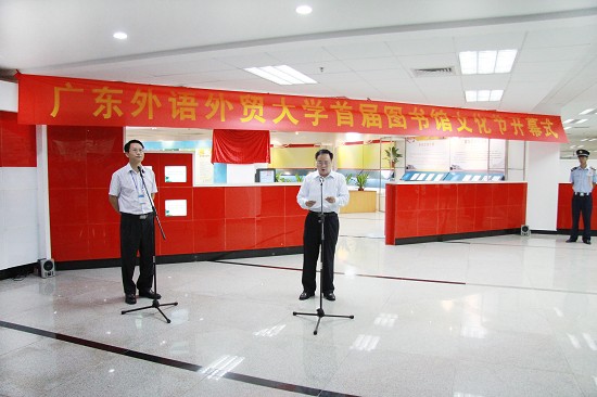 本网讯 10月13日下午,广外首届图书馆文化节开幕式暨新阅读媒介展览在北校区图书馆隆重举行。副校长石佑启,党委常委、组织统战部部长卢景辉,党办、校办主任刘志军,党委宣传部部长胡文涛,学生处处长植秀聪,研究生处处长袁泉,团委书记谢秀兰,教务处处长詹文都,中文学院院长陈彦辉,新闻学院院长郭光华,艺术学院院长李于昆等出席仪式。开幕式由图书馆馆长伍方斐主持。