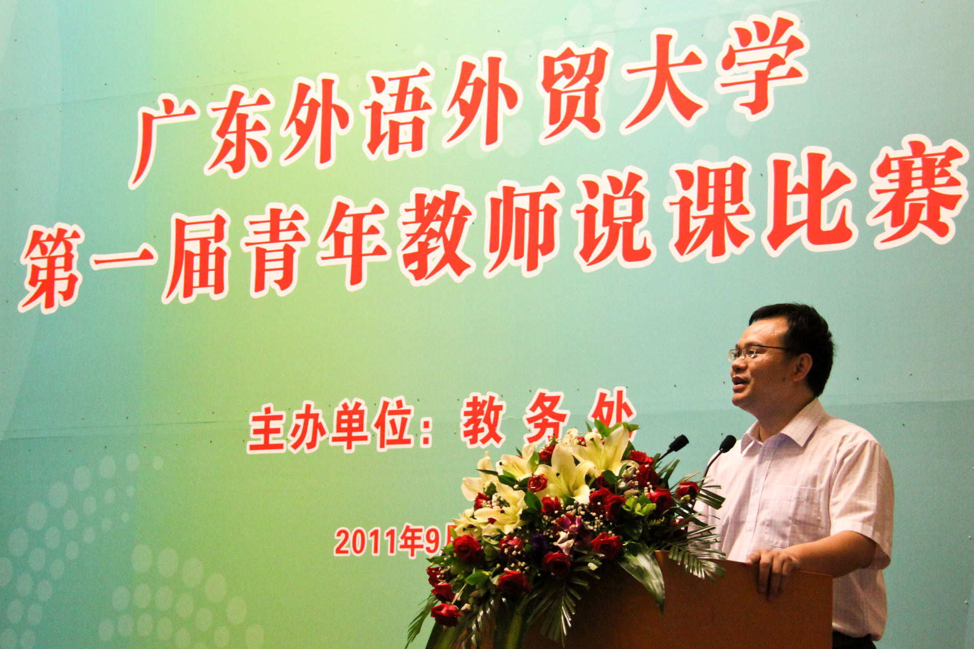 詹文都在致辞中表示:我校青年教师的总体教学质量是好的,但仍需要不断提升教学技能。学校近两年加大了对青年教师的培养力度,在校级教研项目中增加了“青年教师项目”的类别,上学期组织人力申报广东省的“高校外语教师发展示范中心”项目,现又举办首届青年教师说课比赛。今后,学校将继续开展各种教学研讨与比赛,为青年教师的教学技能改进提供机会和平台。