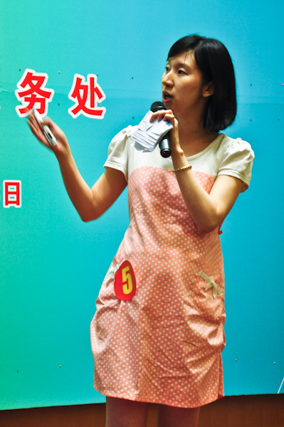 来自英文学院、商英学院、西语学院、东语学院、中文学院、教育学院、翻译学院等7个学院的语言类专业教师参加了在北校区(语言组)的比赛。与非语言类比赛相比,语言组比赛最大的不同和独特之处是:十一位来自上述7个学院的教师,涉及语种包括英语、日语、中文、德语、韩语。参赛教师的说课内容涵盖了语言类专业的口译记忆训练、管理英语、中级英语写作、《红楼梦》研究、德国战后文学史等诸多教学门类,让现场的评委和观众着实享受了一顿语言大餐。
