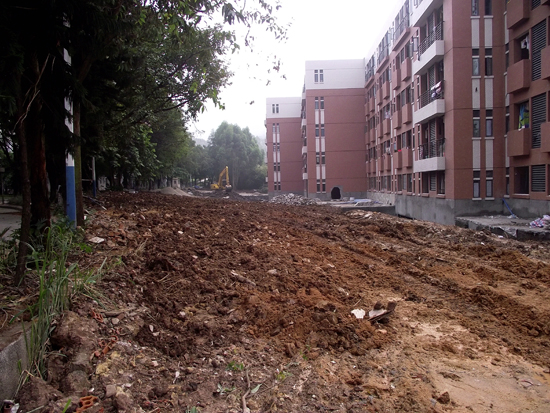 入住在面朝校道的某女生宿舍同学反映,洗手间的窗口位置正对着一大片工程用地,现在工地已经夷平,校道上经过的人一眼便可窥视。对此,记者询问了关于工程用地的用途。据介绍,施工用地夷平后将用于绿化,以隔离校道与宿舍,如此一来,学生隐私有保障,附近环境也变好了。就在工程即将完工时,记者看到17栋宿舍楼内的绿化工作也在紧锣密鼓地进行着,有同学告诉记者,“一夜之间多了很多植物”。