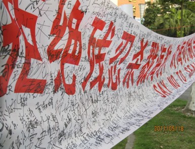活动由动物保护概念宣传以及联合签名投票两部分组成,引起了全校同学的关注和支持。许多同学在“拒绝残忍杀戮海豹,对海豹制品说不,SAY NO TO SEAL PRODUCTS”的横幅上签下了自己的名字以表支持。三条横幅上布满了密密麻麻的签名。