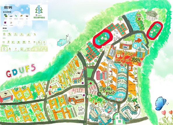 我校绿色先锋环保协会(以下简称环协)成立了一个绿地图制作小组,并制作出三套绿地图,其中南校两套,北校一套。据制作成员介绍,为了吸引大家的目光,他们制作的绿地图中有许多卡通的图案和可爱的设计,希望借此加深大家对自己生活环境的了解,加强环保意识。
