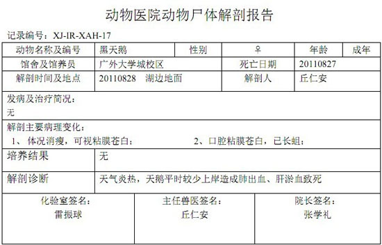 黑天鹅死亡鉴定报告
