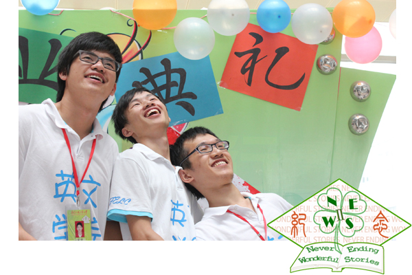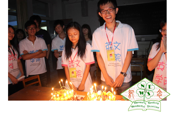 编后语 “当一阵风吹来,风筝飞上天空,为了你而祈祷而祝福而感动”,惜夏缘聚,这个夏天的故事有很多很多:我们一起在办公室纠结地修改课件;我们一起为了这群表面上没心没肺实际上却懂得感恩的孩子们而感动;我们一起期待饭堂的冬瓜宴;我们一起昏天黑地地三国“杀”不停;我们一起模仿各地方言版的《再别康桥》;我们一起度过了这“家常般”却难以忘怀的15天。因为懂得,所以珍惜,因为珍惜,所以快乐。这个灿烂的夏天,让我们收藏这82张笑容,珍藏无尽感动,继续续写未来NEWS队的Never Ending Wonderful Stories!
