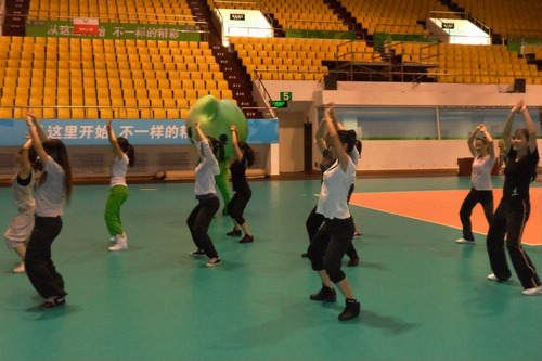 本网讯 “……五、六、七、八……”,在没开空调和风扇的体育馆里,跟着拍子的,除了正在排练的啦啦队队员,还有那滴到地上的滴滴汗水。7月25日,我校国魅啦啦队来到了深圳,担任深圳世界大学生运动会体育展示现场的啦啦操表演队伍。本次赴深表演的带队老师为我校国魅啦啦队的教练陈丹丹,同行的还有该队的12名队员。