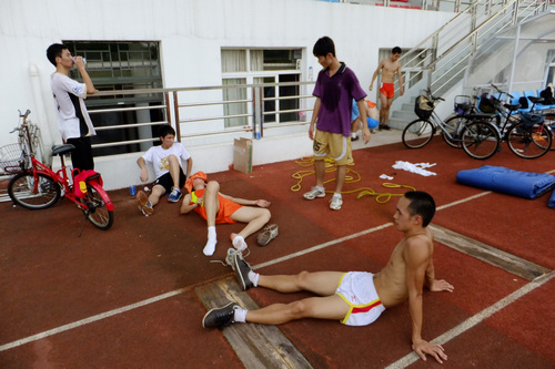 本网讯 夏天的太阳像个大火炉,把大地烤得发烫,就连空气也是热烘烘的,人一动就浑身冒汗。尽管烈日当头,我校田径队的队员们在7月22日早上,准时到南校学生公寓1栋报到,上午迅速整理好宿舍,休息一番,到了下午便马上进行高强度的田径训练。 相比其他运动队,我们田径队在报到的第一天就开始训练,虽然队员们因为考试的缘故已经两个星期没有进行正式训练了,但是队员们并没有荒废这两个星期,有空的时候各自来到田径场上跑几圈,拉拉筋,放松放松,好让身体有一个良好的状态,因此,在第一天的训练里大家适应比较快,顺利完成了基本的训练任务。