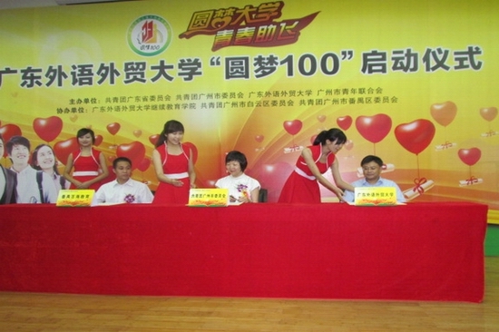 据了解,我校“圆梦100”计划以“圆梦大学,青春助飞”为主题,是在团省委的指导下,联合团市委为推动新生代产业工人培养发展计划组织开展的项目,分别在我校北校区和番禺教学点面向全市共招收200名新生代产业工人,并资助他们就读我校成人高等教育,通过“双导师一助理”管理模式帮助他们圆大学梦。