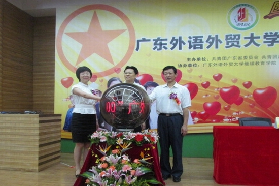 本网讯 8月3日上午,由团省委、团市委、广州市青年联合会、广东外语外贸大学等单位联合主办的“广外‘圆梦100’——广州新生代产业工人圆梦计划”在我校图书馆负一层多功能报告厅正式启动。共青团广东省委员会副书记陈宏宇,共青团广州市委委员会副书记童慧,我校党委副书记许国彬、继续教育(公开)学院院长何勇斌及院党委书记庄典洲出席启动仪式,参加仪式的还有广州各区(市)团委负责人以及新生代产业工人代表。