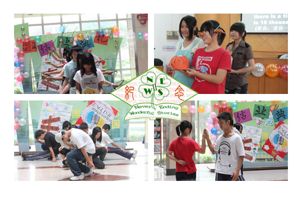 伴随着活跃的音乐节拍声,NEWSII队的队员们摆弄着各种各样的奇特造型,鸣响了下半场“飞扬”乐章。这里有走着傻乎乎企鹅步的小老师们、玩着过家家游戏的小小班主任们、跳着慢半拍的苏格兰牛仔舞的姐姐们,爱音乐更爱耍酷最爱逗孩子们笑的哥哥们。队员们满脸的笑容与认真,外加一点点小紧张,充盈着青春飞扬的色彩,一段精彩的风格走秀博得了同学们的阵阵欢呼声与欢笑声。