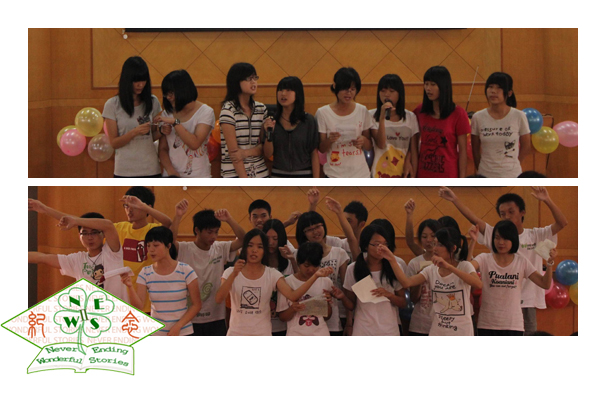 本网讯 7月30号,是英文NEWSⅡ队队员们和佛山高明纪中的同学们都难以忘怀的日子,15天酸甜苦辣的夏令营生活在今天就要结束。这天早上,由NEWSⅡ队的小老师和纪中的同学们精心准备的NEWSⅡ夏令营结业典礼暨汇报演出分别在纪念中学阶梯教室和行政楼大厅分上下两场举行,上半场的主题为‘青春’,下半场的主题为‘飞扬’,整场典礼质朴而动容,为半个月的旅程划下一个美好的句点。