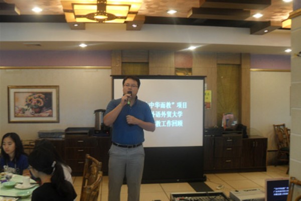 校党委副书记许国彬进行总结讲话,他指出本次支教活动在校团委及英语教育学院等单位的共同努力下圆满完成,在当地掀起了一阵广外旋风,带去了先进的教学理念,成果卓著。许国彬鼓励老师和同学们及时总结,认真提炼,争取把“为中华而教”这个项目做成品牌,为当地群众造福。