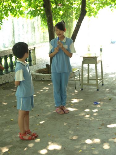 摄影课,三名老师,二十四个学生,每个老师只有一部相机。课上,老师讲评了上一节课的学生作品之后,就带着大家到菠萝蜜树下,让所有的学生轮流拍最后一张照片。孩子们小心翼翼地拿着相机,努力地寻找最合适的角度,犹豫了好久才按下快门。之后,师生一行人回到课室。老师开始总结这几节课来大家的表现。