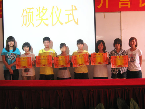 随着第二轮比赛的结束,这次春湾中学英语夏令营英语口语大赛也落下了帷幕。最后共决出了一个一等奖,两个二等奖,三个三等奖。在两轮比赛中都表现突出的林青青同学毋庸置疑地登上了冠军宝座。稳定发挥的钱敏源和从后追上的陈芳童同学也在大家的簇拥和掌声下夺下了亚军。他们三位女生将会连同五班的谢林蓓一起代表春湾中学前往阳春一中参加阳春七校英语综合技能大赛,为春湾中学争夺荣耀。
