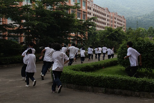 听到警报后学生们开始“逃离”到“安全地带”