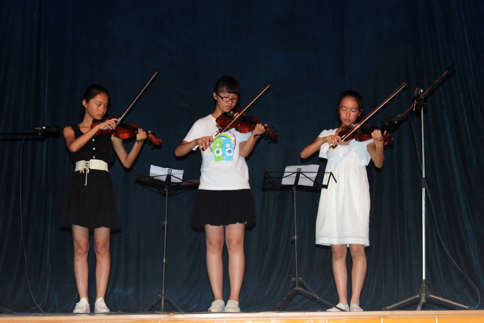 两点半,学生们基本上已经到达会场。就在这时,突然发现有一首歌的伴奏忘记放到电脑里面,一位队员马上跑回办公室,重新把伴奏带过来会场。除了这段小插曲以外,整个文艺汇演演出十分顺利。其中初二两名同学的相声《我叫大炮》反响很好,台下时而爆发出阵阵笑声。还有小提琴演奏《绿袖子》也是让现场的小观众们流连忘返,陶醉其中。最值得一提的是初一的一个班级表演的英语话剧《白雪公主》,整个节目的表演者都把英文台词记得滚瓜烂熟,表演演出了风采,演出了特色。谢幕时,该节目赢得了如雷的掌声。最后的一个节目是VISION队员唱法国童谣和队歌。在介绍老师们出场的时候,其中一位主持人把他的班主任的赠言读了出来,引起了大家的共鸣,感动,不舍之情油然而生。