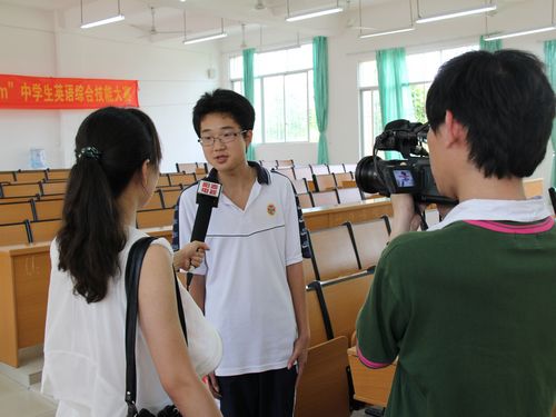 阳春电视台记者对获得一等奖的Sunkids队选手莫汝晶和张泉进行了采访。在感谢老师与同学对他们鼎力支持的同时,他们认为通过参加本次比赛,锻炼了自己的个人能力,对团队精神的领悟也更胜从前。他们非常喜爱商英学院三下乡分队的老师们,也期待与老师们来年再会。商英三下乡总队长叶馥馥表示,商英学院与阳春各中学历年来都保持着三下乡合作,队员们在为各学校的学生们提供了志愿教学的同时,自己也能够收获宝贵的经验,在教学中认识到自身的不足,从而更有目标地计划以后的学习,形成双赢的局面。