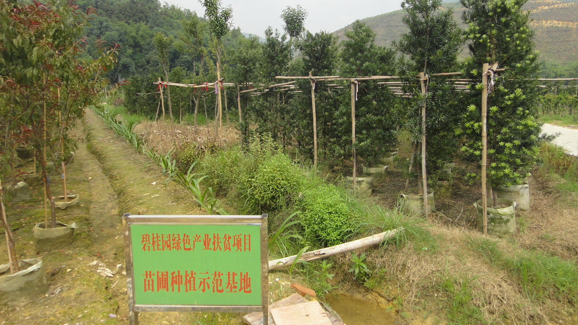 碧桂园是全国著名的房地产公司。自从上年8月开始对西牛镇树山村进行扶贫。绿色产业扶贫是其中一个项目,旨在改变树山村农民原本以农作物为主的种植模式,转为苗圃种植。