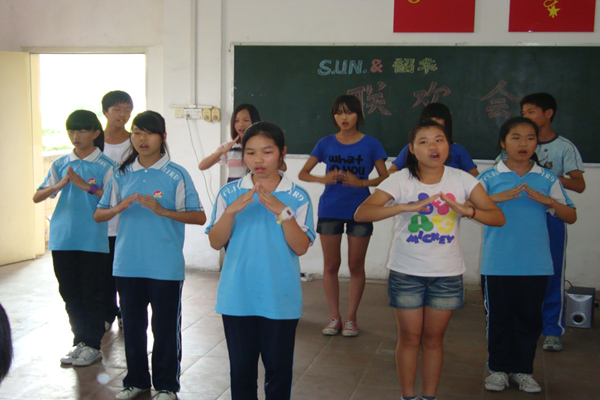 下午,“韶华队”与另一支下乡队伍“太阳队”共同举行欢送会。三点钟,众多学生准时到达会场,找到自己的座位安静的坐着,等候老师的安排。欢送会以一首《将进酒》开场,朗读学生在诗歌中融进了自己那丰富的情感,全场观众无一不被其感染。紧接着,韶华队的手语表演《爱因为在心中》唱响了每个人的心声,也让整个欢送会进入白热化,接下来的节目也越来越精彩,合唱,舞蹈表演,一个接着一个,一个比一个更加精彩,现场不断传出一阵阵欢呼声。众多师生仿佛已经忘记了那将要离别的悲伤,尽情地去享受这最后的疯狂。韶华队员们深情唱道:“我会牢牢记住你的脸,我会珍惜你给你思念,这些日子在我心中永远都不会抹去……”