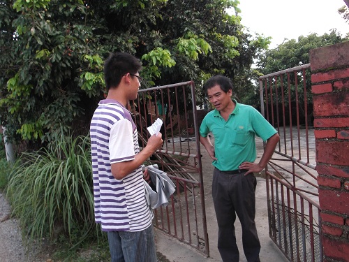 早饭过后,调研组的队员便兵分两路,向永强学校附近的村子进发。记者跟随赖科雄等人出发。一行人首先去到了上埔的三角夫村。由于今天是大暑,天气炎热,村民们大都抓紧时间在家里晒谷,比较少时间接受调研组的访问;同时,高温天气使大家都出现了中暑现象。调研工作面临着巨大的挑战。