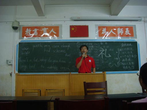 与校方领导交流后,罗导在队员的陪同下查看了学校的周围环境。在听完这八天来的活动报告后,对服务队这些日子里开展的具体课程安排和其他趣味活动给予了肯定,并在随后的与队员的会议上发言给队员鼓鼓劲。会议上,罗导不仅明确表达了对我们这次三下乡活动的鼓励和赞赏,还十分关心队员们在下乡过程中所遇到的困难。