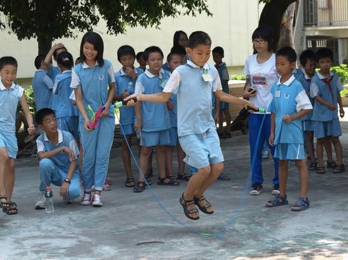 本网讯 7月25日上午,商英三下乡Try&Goal分队在恒美小学举行趣味运动会。本次趣味运动会设有乒乓球传递比赛、瞎子敲锣、手拉手传呼啦圈和跳绳踢毽比赛四个项目。烈日炎炎,学生们的运动热情也如这夏日里的热浪一样高涨,比赛掀起一波又一波的高潮。