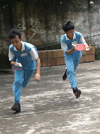 第一个项目是乒乓球传递,每班派出5名学生。参赛者要用乒乓球拍托着乒乓球,在球不掉落的情况下从起点跑到终点再折回,用时最短的班级获第一名。在比赛过程中,选手们摸索出许多出奇制胜的方法。例如,将球拍向里倾斜,可以减少小球掉下来的几率;或者在小球即将落下时迅速用手接住,减少捡球花费的时间。选手们健步如飞,有良好的平衡感。同时,他们配合默契,在传递小球的过程中做到滴水不漏,团队合作能力得到充分展现。