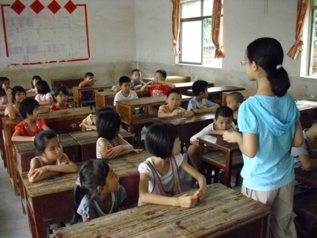 不知不觉,几天已经过去了,在这些天里,学生人数不断增多,到现在,几乎每个班都爆满,队员们的热情,学生们的好学,无一不让人感动。在渐渐步入正轨的今天,学生们似乎都开始对老师产生深厚的感情,每天放完学还恋恋不舍地留在学校,回去吃完饭又立刻赶过来了,中途没有片刻的歇息时间,即使校门没开,他们也会向附近的村民借一两张凳子,坐在校门口等待,那份坚持,风雨无阻。 各位老师课程五花八门,有传统的语文、数学,还有第二课堂的手工和百科,当然,也有能体现我们广外特色的英语,也有锻炼孩子身体的武术等等,更有我们协会的代表课程——书法课。同学们认真听讲,通过老师生动的讲解,一扫以往在学习过程中对课程的不满,积极投入到学习中来。下课后,经常性地一群人围着老师,跟老师聊天。一百多个小孩子,不管以前怎么调皮,现在的他们,却是真心地想要学多点东西,认认真真地完成所有老师布置的作业,生怕如果明天没有教,后天他们就不能再来上课了。