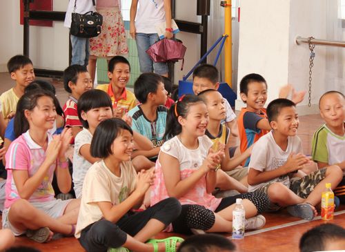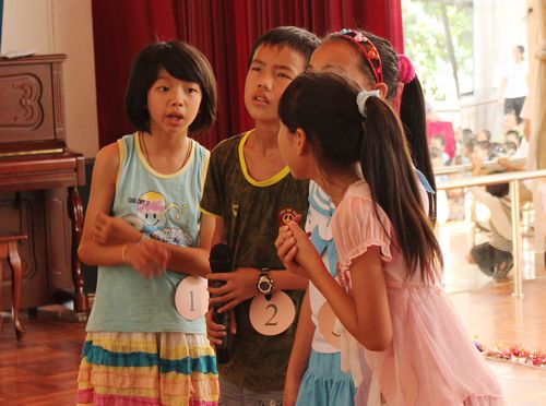 本网讯 7月23日下午两点半,Circle Team策划举办的“英语风采大赛”决赛在申明亭学校的礼堂拉开帷幕。我校校团委副书记陈兵、商英学院党委书记车小真、商英学院副院长郭桂航、商英学院党委副书记张林茂、团委书记谭秋云、07级辅导员黄汐、10级辅导员连勇以及申明亭副校长张为莅临本次大赛。评委则由申明亭的黄坚莉老师以及Circle Team的队员卢悦、杨明媚、苏渝斐组成。经过三轮激烈的角逐,来自三年级A班的Gardenia队、四年级A班的Leaf Clover队和五年级A班的Flame Lily队脱颖而出,荣获“风采之队”的称号。比赛中途,郭副院长向申明亭学校赠送了书籍,帮助孩子们开拓视野,受到孩子们的热烈欢迎。