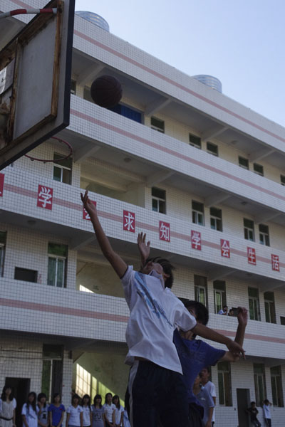 比赛正式开始前,各班了解此次运动会的赛程及比赛规则后,大声呼喊自己班的口号,各个班均声音嘹亮、气势逼人。此次运动会包括抢凳子比赛、跳大绳比赛、三人篮球比赛、五人六足和压轴性的拔河比赛。虽然烈日炎炎,但是学生参与热情高涨,呐喊声和加油声在操场上此起彼伏。
