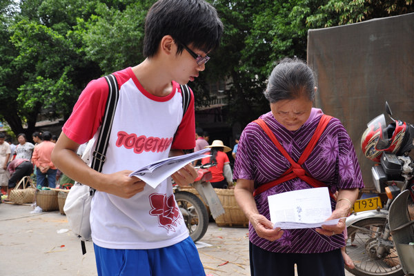 本网讯 7月22日,为了向周田的人民宣传法律知识,提高生活中的法律意识,Together开展了“倡导法律文化 构建和谐周田”的大型普法活动。为扩大宣传力度,Together在普法活动正式开展前连续三天深入周田镇周围的民居进行一对一宣传。在周田镇的人民政府、人民法庭、司法局和仁化县电视台的帮助下,普法活动顺利开展,前来咨询的群众络绎不绝,普法活动得到理想效果。