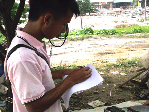 本网讯 20日下午,调研组成员在组长苏鸿鑫的带领下正式外出开展调研活动。今天主要是对石城镇居民进行问卷调查。调研组内部分成三个小组,分别对事先划分好的区域的居民进行问卷调查。 调查课题是关于石城镇居民的生活满意度,问卷问题涉及村民生活的很多方面,除衣食住行外,还专门针对当地石材厂的空气污染以及噪音问题设置了相关问题。考虑到调查对象的代表性问题,调研组选择家庭主心骨以及不同行业的人作为主要调查对象。苏洪鑫和组员陈泳珊到汾水拗村进行调查。两人先绕整个村走了一遍,发现留在村里的人比较少,大部分家庭主要劳动力都外出务工了,使得调查对象的选择范围缩小了,从而增加了调查难度。