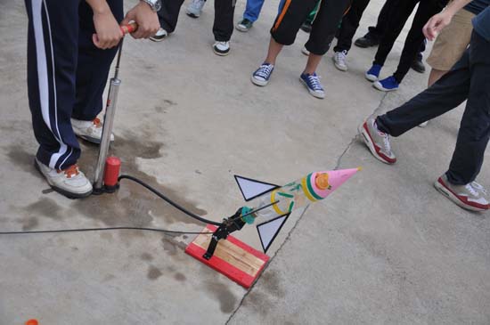 水火箭最初是由一些日本青年发展起来的。通过向汽水瓶中打气,利用作用力反作用力的原理将“箭体”发射出去。这门课寓教于乐,重点在于培养学生对科学知识的兴趣,让孩子们在玩乐的过程中感知物理知识,学会团队合作。