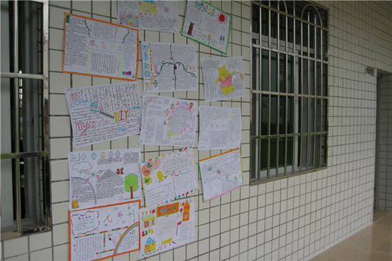 两节课的时间眨眼过去,同学们的努力也初见成果,看着一张张色彩斑斓,丰富多彩的手抄报,同学们不由赞叹起来,老师们也感到非常欣慰。为了让大家都能欣赏到各自的成果,支教组的成员将学生制作的手抄报张贴到科室外面的墙壁上,形成了一道靓丽的风景线,过往的行人无一不被吸引,都停下来仔细观赏,同学们下课后也经常站在墙壁前开心地议论着。