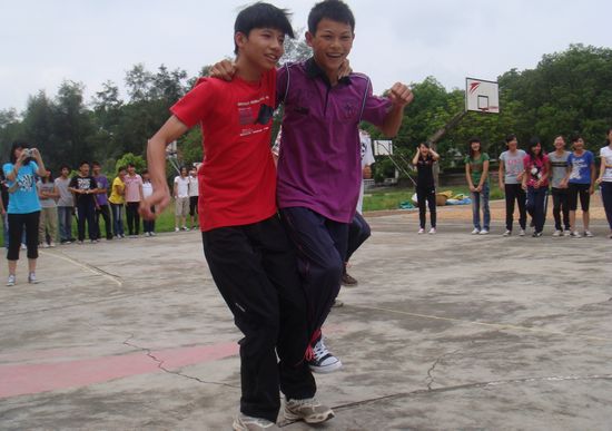 随着一声哨响,趣味运动会的第一个比赛项目--“二人三足”正式开始。只见六个班的参赛选手,有的一边喊着“一二一”的口号,一边有节奏地前进;有的则踉踉跄跄地往前走;有的则不管绑脚的绳子弄断与否,一个劲地往前冲。你一步我一步,互不相让,只为最后的胜利。最终6班的孩子们凭借着出色的配合与稳定的发挥,获得了第一名。