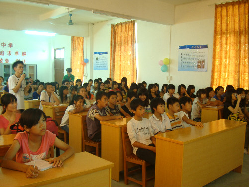 本网讯 幸福是什么?“建设幸福广东”又是什么?“勤迷端城”服务队结合自身实际,于20日下午在封开县河儿口中学多媒体教室举行以“幸福心语”为主题的专题讲座。河儿口中学百余名初中生参加本次讲座。讲座目的主要在于通过向学生阐述幸福的含义,引导学生感受幸福、从而进一步引导学生为自己和他人创造幸福,为建设幸福广东出一份力。在为当地学生带来丰富的科学文化知识的同时,“勤迷端城”服务队亦注重为学生带去精神粮食,注重学生的心理健康的培育。